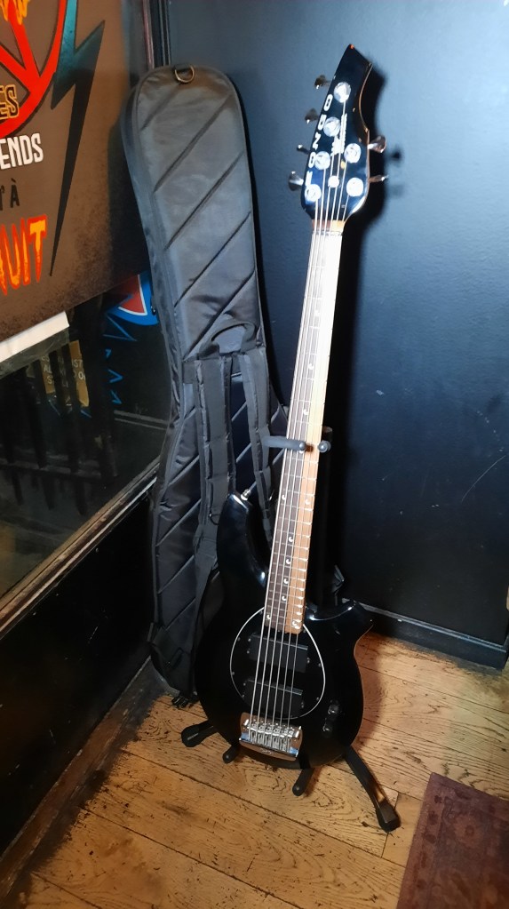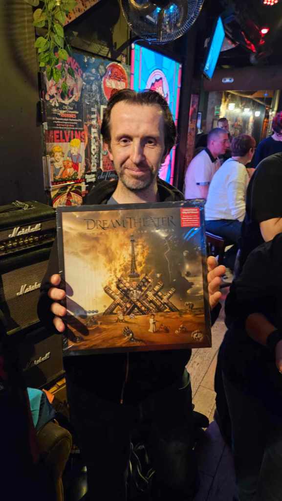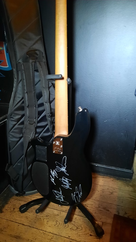 Nous nous mettons en route en milieu d’après-midi, Véro et moi (Kikithehead) pour récupérer notre ami Romain qui a gentiment accepté d’apporter sa basse signature John Myung dédicacée par tout Dream Theater.
