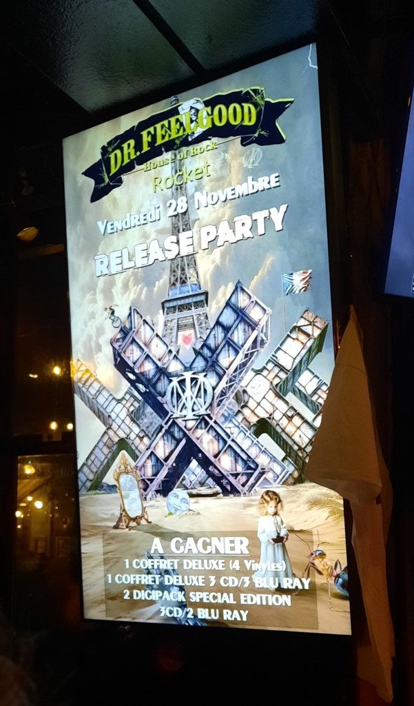 Petite nouveauté par rapport aux Release Party Précédentes, il faut remplir un bulletin et le glisser dans une urne pour gagner un des cadeaux offerts par Sony Music France et le Dr Feelgood. Seuls les fans qui sont réellement intéressés par le tirage au sort sont récompensés et non l’ensemble des clients du bar qui se voyaient remettre un ticket pour chaque consommation comme c’était le cas pour les précédentes éditions.