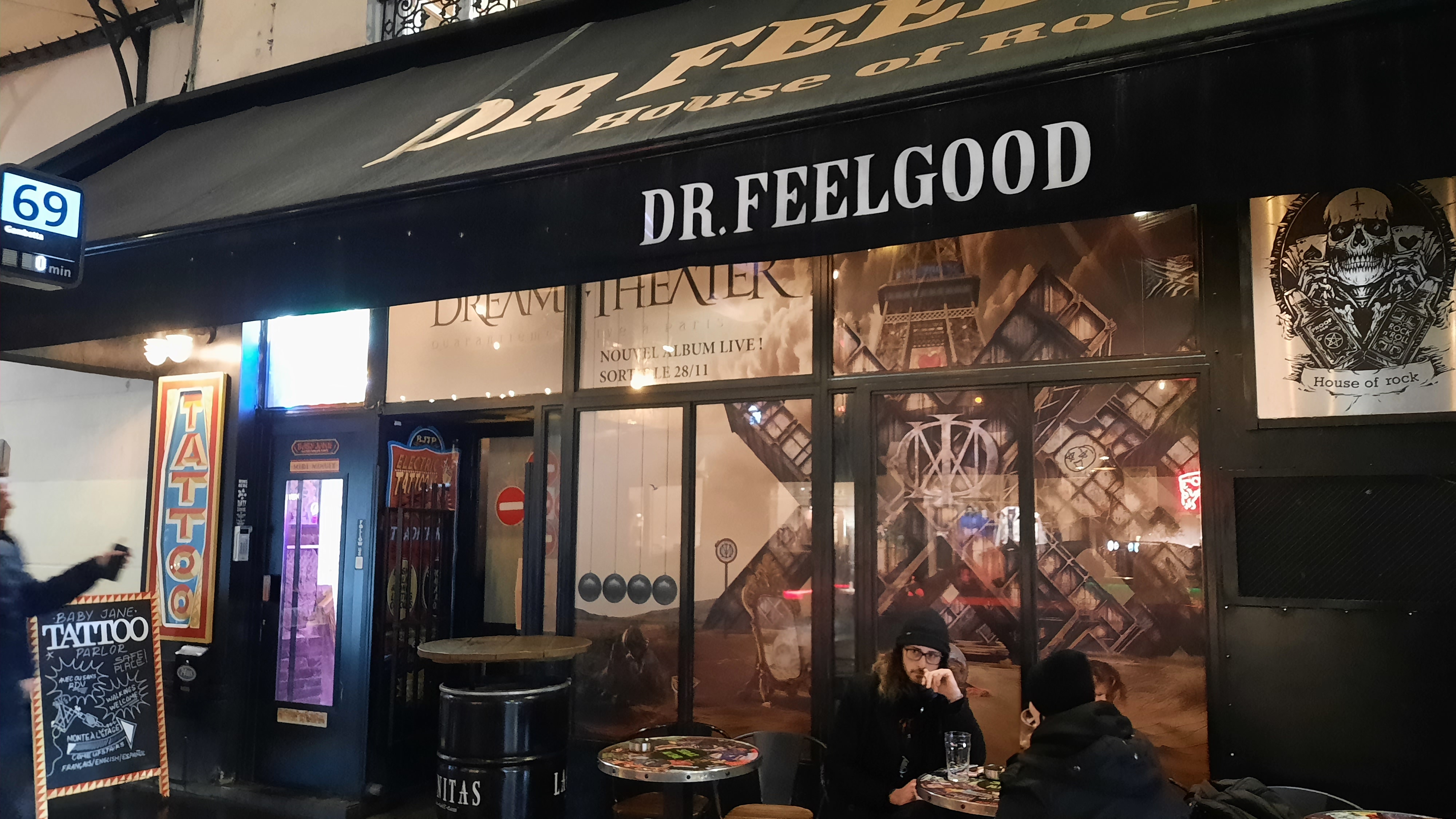Nous arrivons au Dr Feelgood aux alentours de 18:00. La devanture est magnifiquement décorée aux couleurs de Quarantième: Live à Paris !