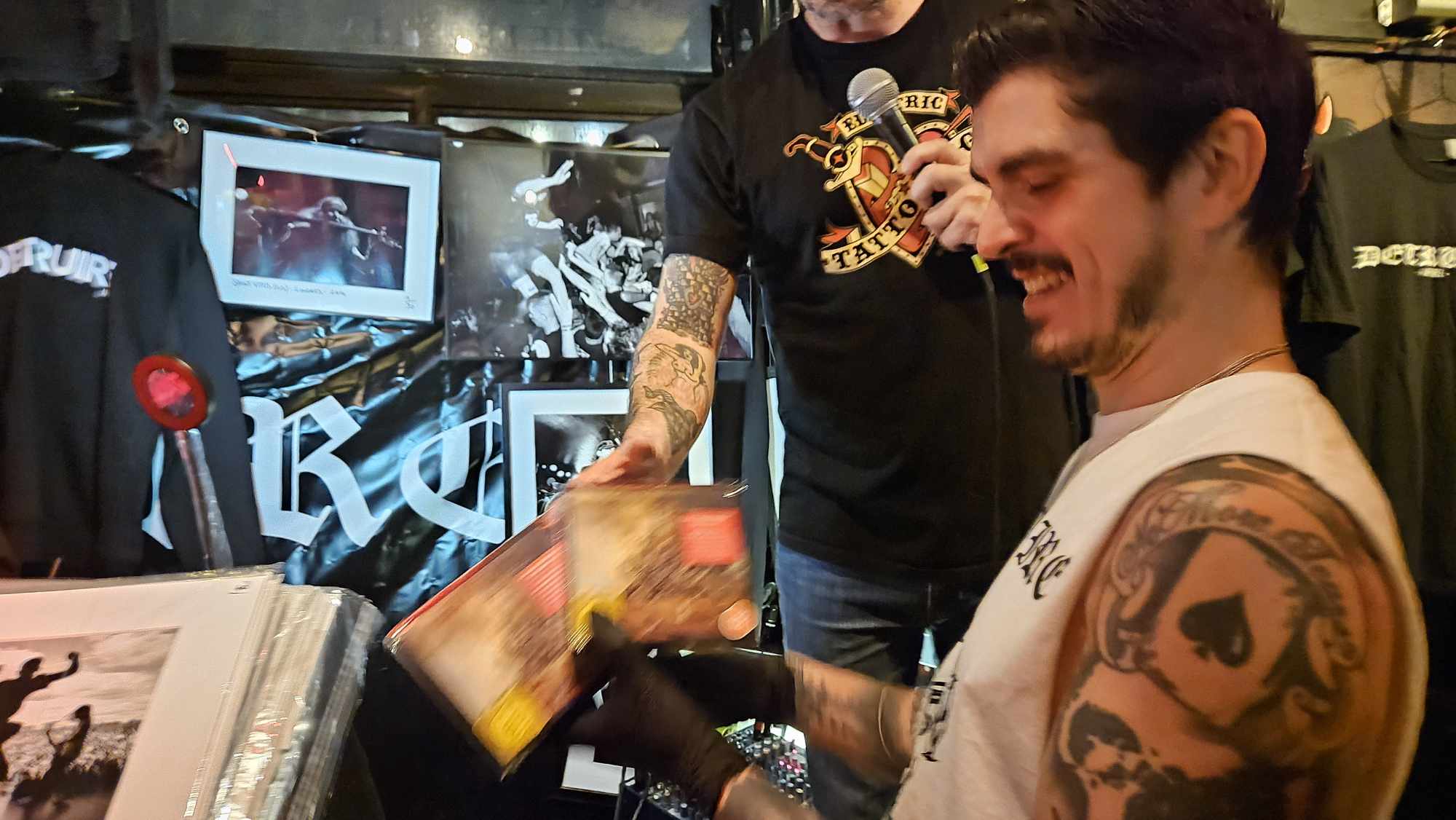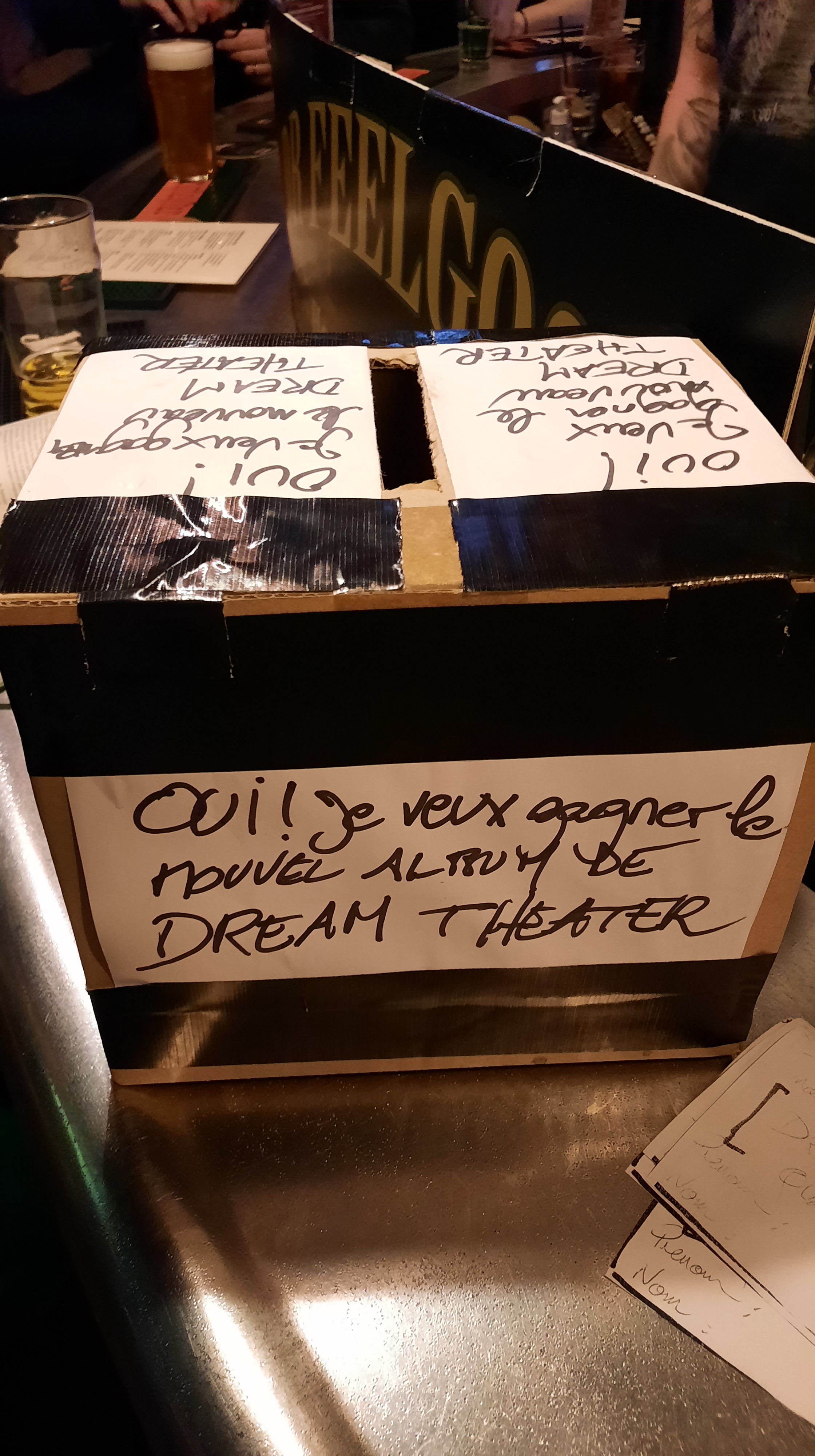 Petite nouveauté par rapport aux Release Party Précédentes, il faut remplir un bulletin et le glisser dans une urne pour gagner un des cadeaux offerts par Sony Music France et le Dr Feelgood. Seuls les fans qui sont réellement intéressés par le tirage au sort sont récompensés et non l’ensemble des clients du bar qui se voyaient remettre un ticket pour chaque consommation comme c’était le cas pour les précédentes éditions.